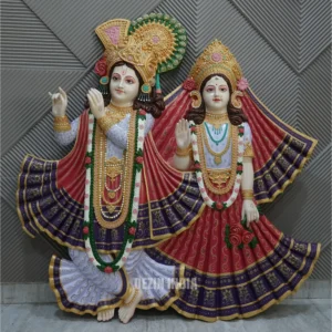 Radha and Krishna’s love is considered the purest form of devotion. Their union represents the bond between the human soul and the divine. This stunning mural captures their playful and loving expressions, creating a sacred and beautiful focal point that reminds us of the power of true love and unwavering faith.