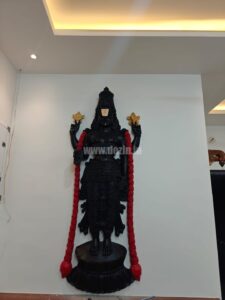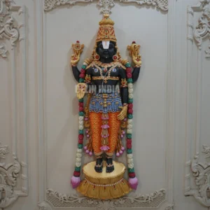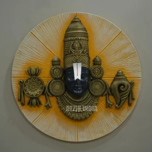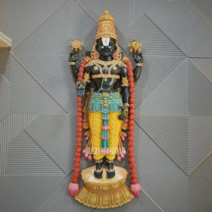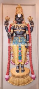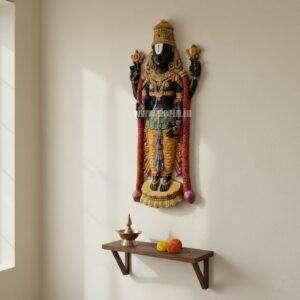 Lord Venkateswara is a form of Vishnu and is widely revered as a protector and provider of divine blessings. His presence brings prosperity, good fortune, and spiritual fulfillment to his devotees. This stunning mural captures his powerful and serene form, creating a sacred and inspiring focal point.